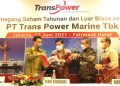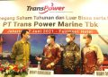 Direktur Utama PT Trans Power Marine Tbk. Ronny Kurniawan (kedua kiri), Wakil Direktur Utama Daniel Wardojo, Direktur Rudy Sutiono dan Direktur Aman Suaedi berbincang usai Rapat Umum Pemegang Saham Tahunan di Jakarta, Kamis (17/6). Perseroan menyetujui pembagian dividen tunai sebesar Rp57 miliar atau Rp22 per saham dan mencatatkan pendapatan usaha sekitar USD 2 juta pada 2020.