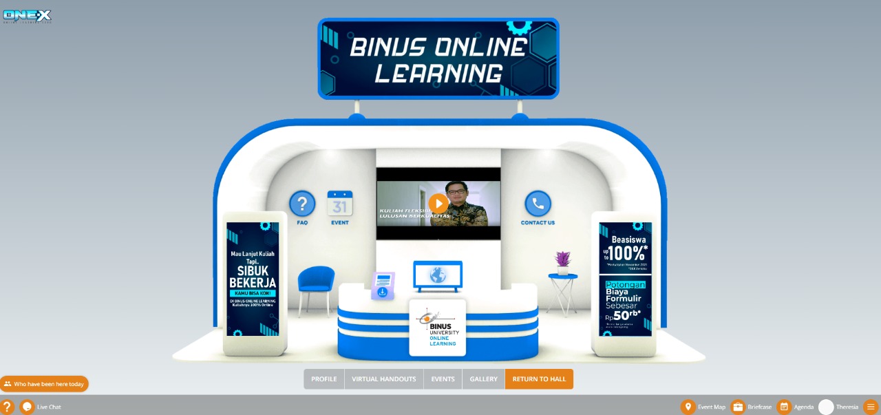 Menyadari hal ini, BINUS ONLINE LEARNING hadirkan pameran pembelajaran online terbesar di Indonesia bertajuk ONE-X (Online Learning Expo). Disuguhkan secara virtual, acara yang berlangsung selama tiga hari dari tanggal 23-25 September 2021 ini sukses menarik perhatian para pembelajar masa kini untuk menyiapkan kompetensi dan keterampilannya di masa depan.
