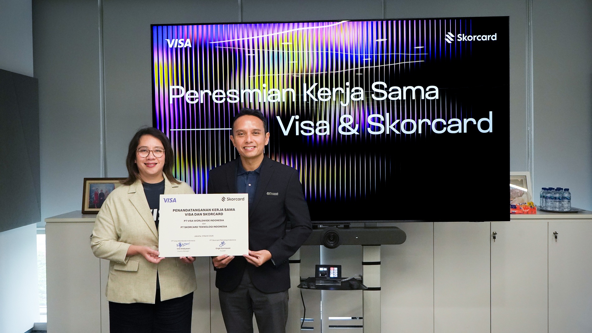 Kerja sama strategis tersebut ditandai dengan penandatanganan perjanjian yang berlangsung di kantor Visa Indonesia, Jakarta, dan dihadiri oleh Ongki Kurniawan, Founder PT Skorcard Teknologi Indonesia, serta Vira Widiyasari, Country Manager PT Visa Worldwide Indonesia, beserta jajaran manajemen dari kedua perusahaan.